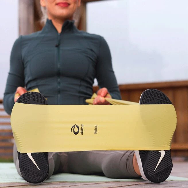 Abilica Fitness Band ECO – Træningsbånd fra Abilica i høj kvalitet og fra en fabrik med høj kvalitetskontrol. Båndene er fremstillet af naturgummi og fås med tre forskellige modstandsniveauer (let, medium og tung).