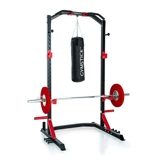 Spotting arms giver dig selvtillid til at presse dig selv uden at være nervøs for skader. Half-Power Rack giver næsten uendelig fleksibilitet og sikkerhed med let justerbare enheder. Power band resistance og multi-grip chin up bar giver yderligere muligheder for forskellige øvelser. Indeholder også lukket krog til boksesæk eller sling trainer.