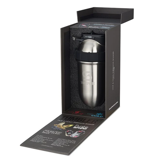 Dét der gør Steel Tumbler til et must er, at den ikke bare er en shaker. De dobbelte stålvægge holder din drik varm eller kold i hele 12 timer! Du kan nyde en iskold smoothie til morgenmad, en varm kop kaffe eller en god proteinshake efter din træning. Alt sammen med den samme flaske.