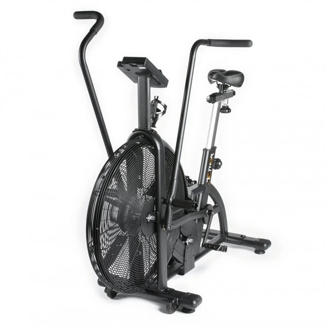 Airbiken er også udstyret med et transporthjul, så maskinen let kan flyttes. Windstopper og flaskeholder er også inkluderet. Sadlen er både lodret og vandret justerbar.
