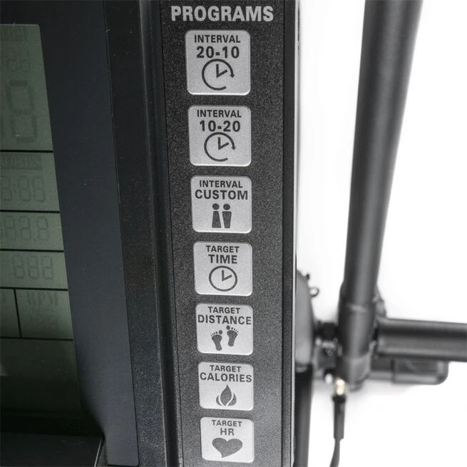 Skærmen kan tilsluttes en pulsmåler med 5 kHz transmission. På skærmen kan du se distance, watt, kcal mm. samt gøre brug af de forprogrammerede intervalprogrammer.